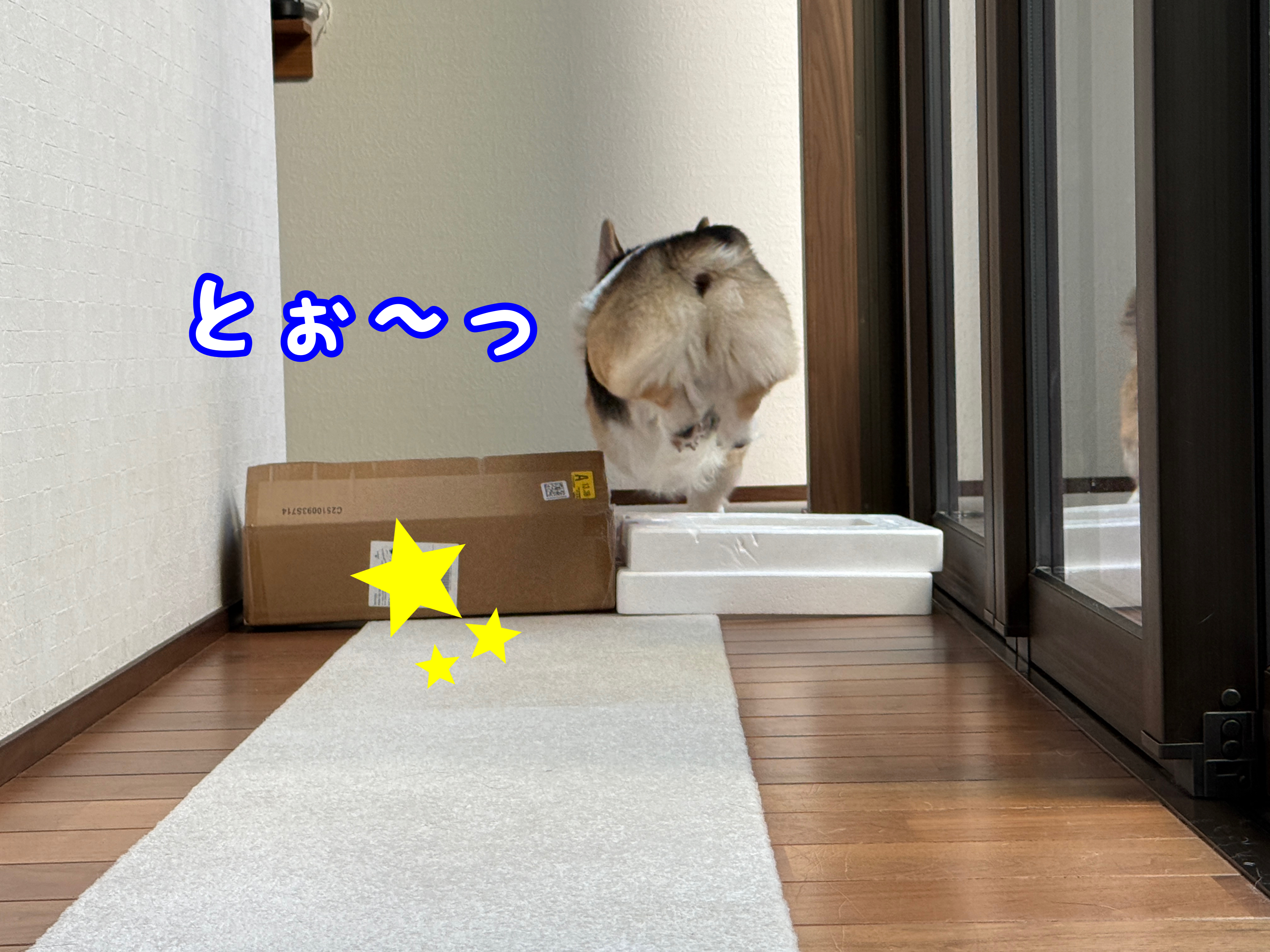 廊下に箱を置いてみました😁
