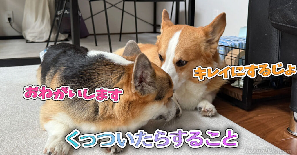先日の2ぴき🐶🐶 2ぴき並んで、 にこにこ☺️ するとはるさん… てんてんを、 ぺろぺろ。 ぺろぺろ。 キレイにし始めました😁 くっついたらすることになっているの⁉️ でも、 てんてんは、 気分じゃなかったらしく…...